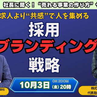 10月3日(金)20:00-21:30、ナミックス社・長井剛敏社長をお招きして、無料のオンライン・コラボセミナーを開催します。テーマはずばり、「求人ではなく、共感で人を集める」採用ブランディング。